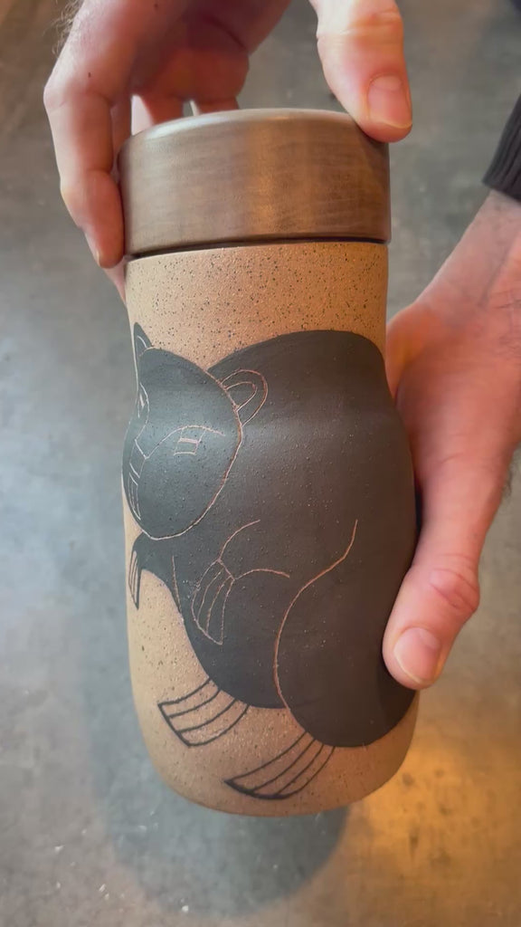 Hand Illustrated Sgraffito Stoneware Bullet Jar - Beaver