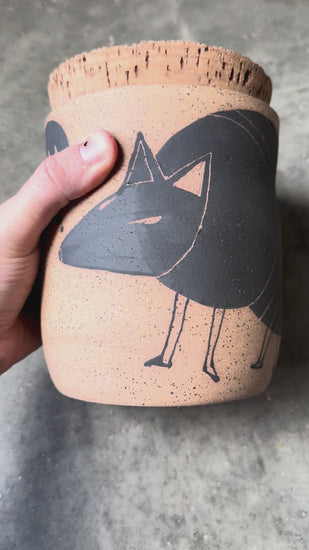 Hand Illustrated Sgraffito Stoneware Bullet Jar - Armadillo