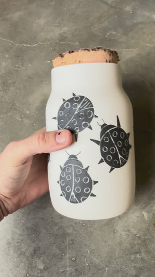 Hand Illustrated Sgraffito Porcelain Bullet Jar - Ladybugs