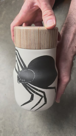 Hand Illustrated Sgraffito Porcelain Bullet Jar - Spider