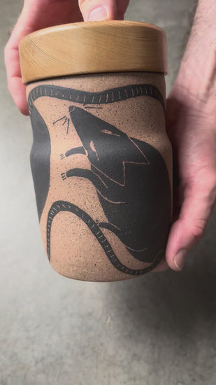 Hand Illustrated Sgraffito Stoneware Bullet Jar - Rats 2